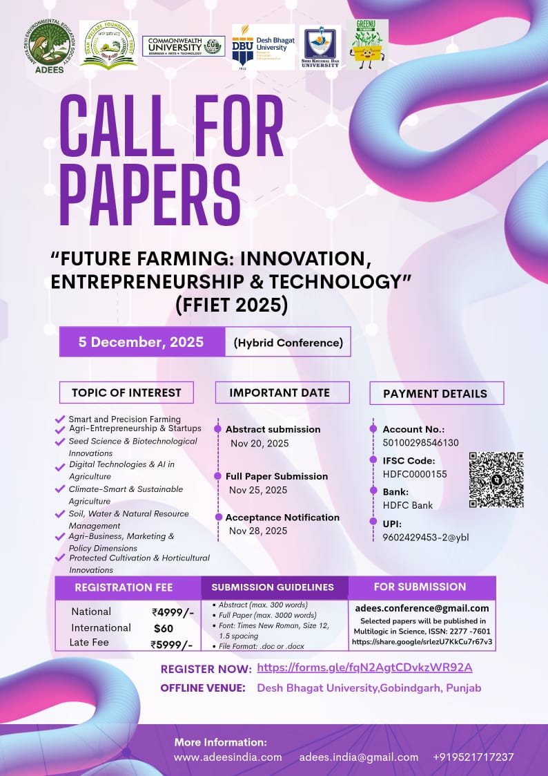 Theme: “Future Farming: Innovation, Entrepreneurship & Technology” (FFIET 2025)